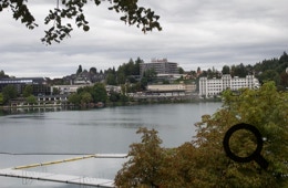 Der Regen läßt uns in Ruhe, nur die Berge sind wolken–verhangen. Viele andere nutzen ebenfalls die Regenpause. Es ist Samstag und jede Menge Wochenendgäste scheinen in der Stadt zu sein.