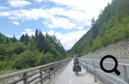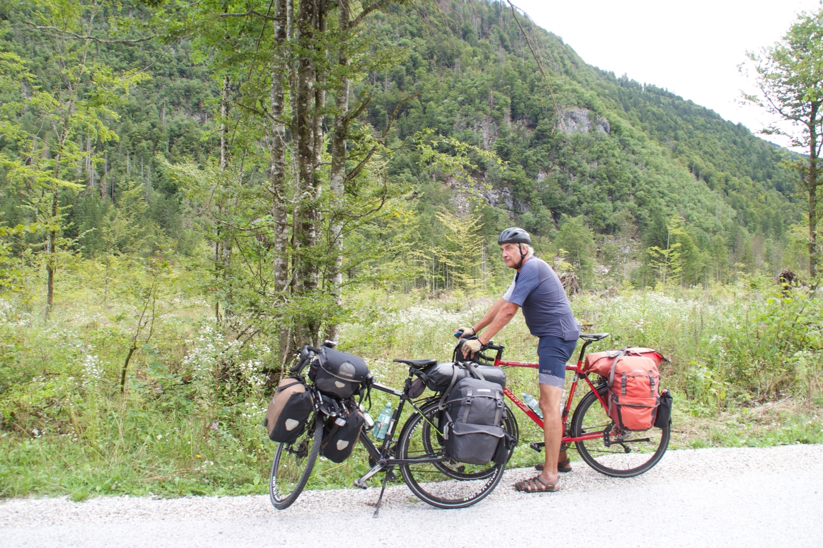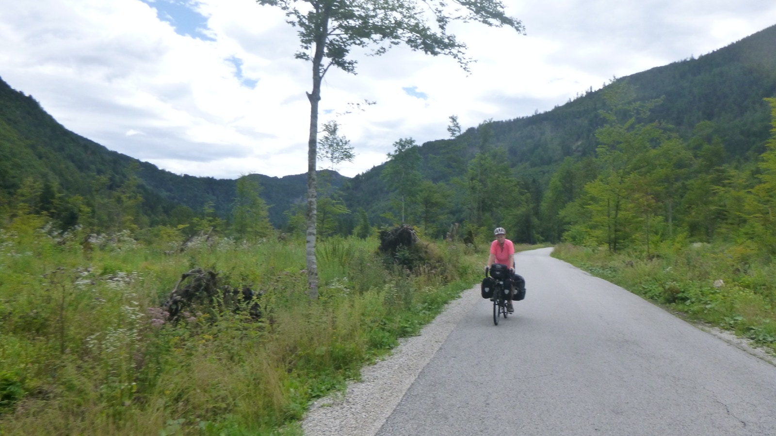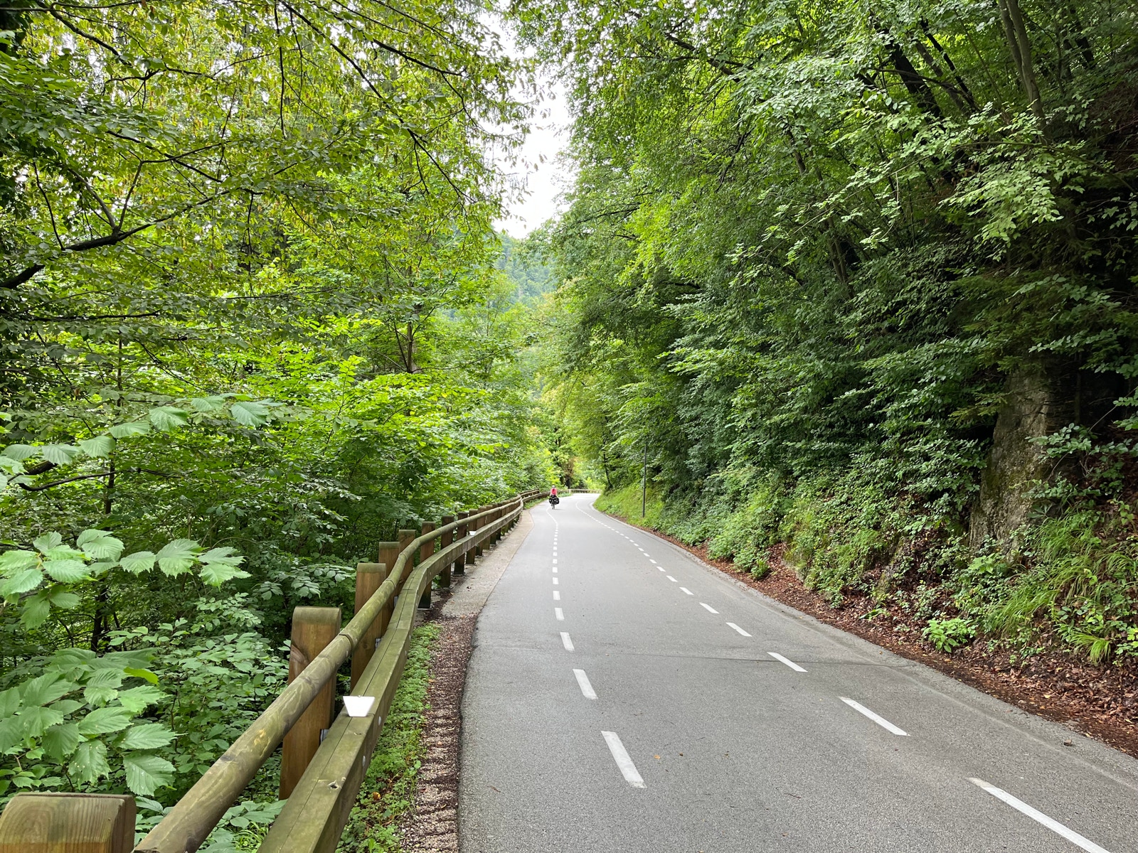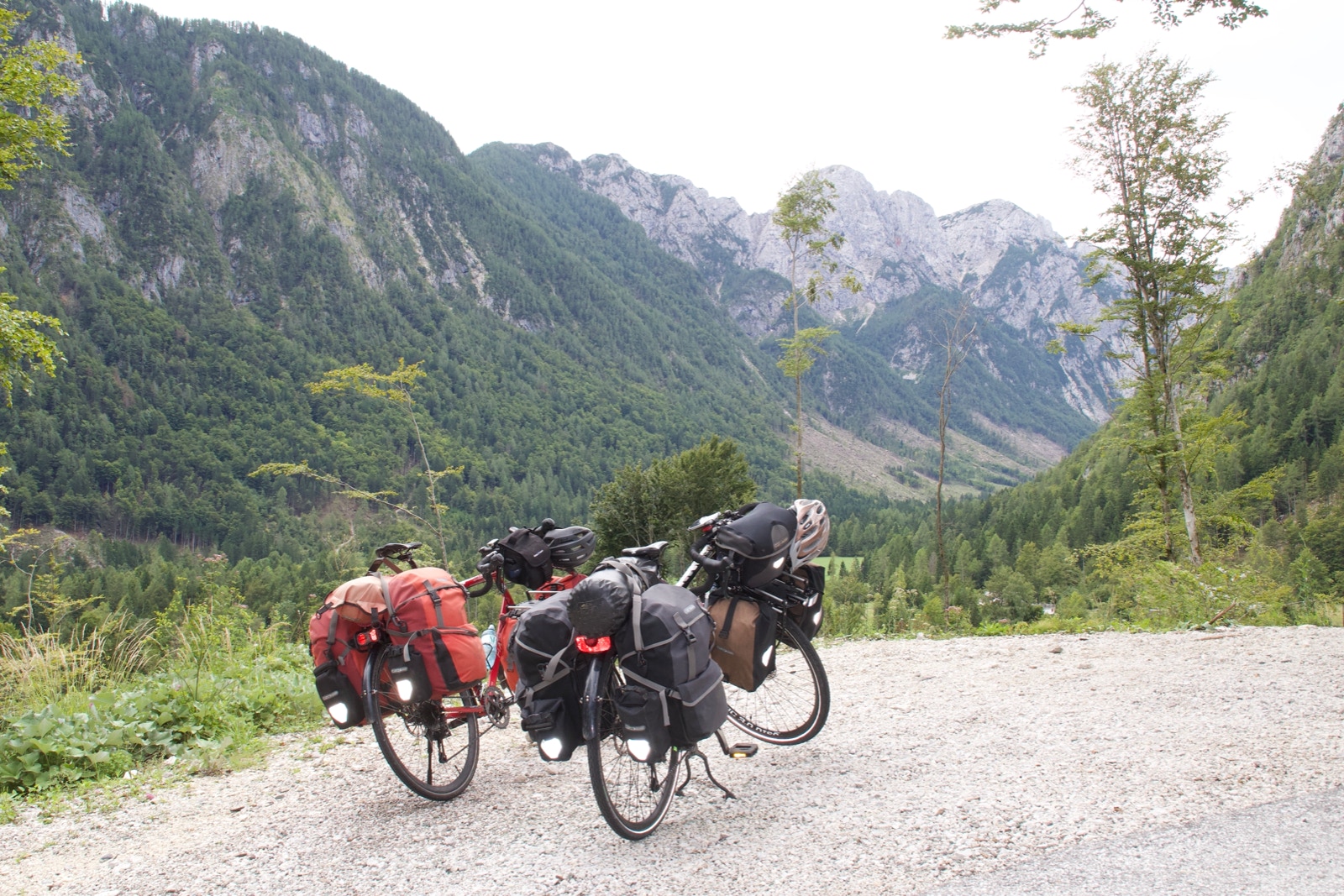 Es sind heute viele Radfahrer unterwegs, teils in Gruppen, Familien oder Paare mit Gepäck. Das ändert sich auch nicht, als wir in den Nationalpark „Triglav“ kommen. Hier geht es fast flach durch dichte Wälder mit wenig Autoverkehr.