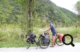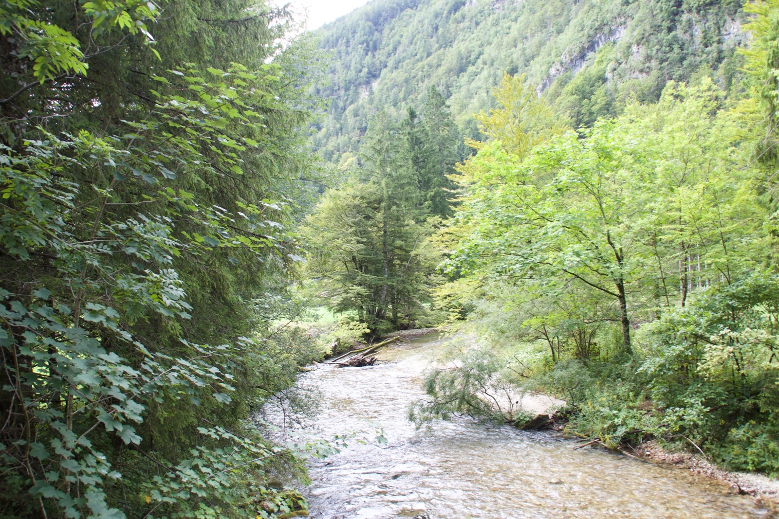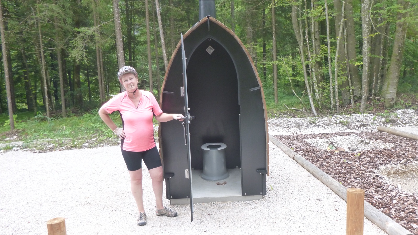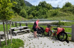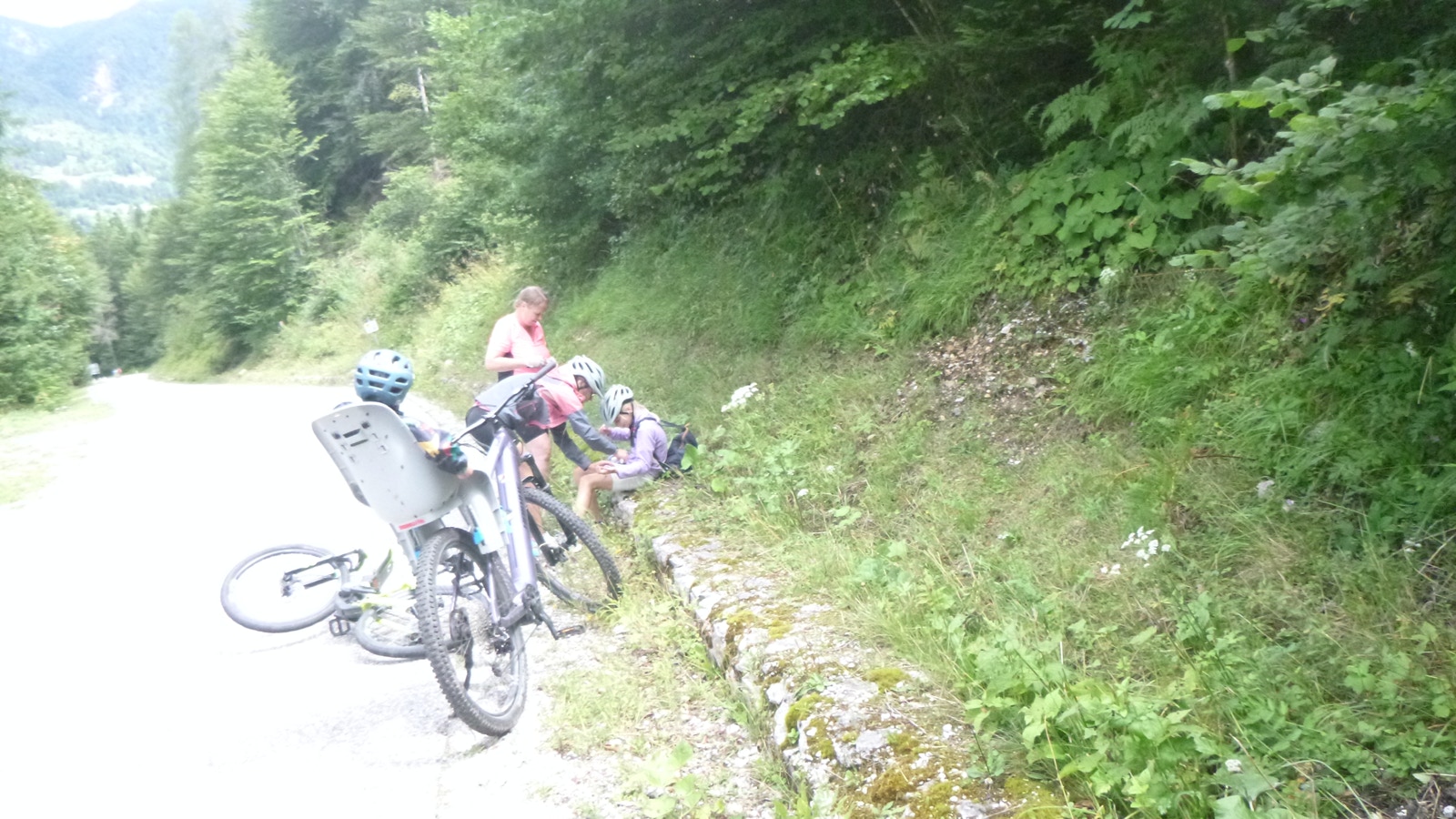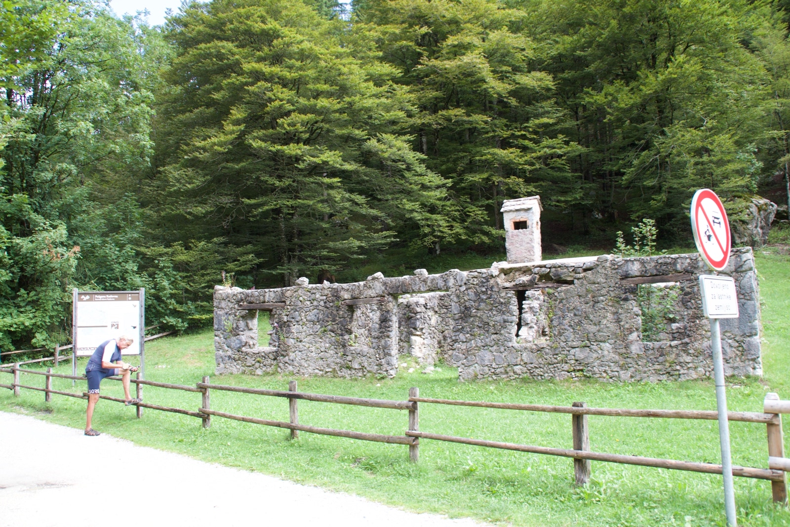 Es sind heute viele Radfahrer unterwegs, teils in Gruppen, Familien oder Paare mit Gepäck. Das ändert sich auch nicht, als wir in den Nationalpark „Triglav“ kommen. Hier geht es fast flach durch dichte Wälder mit wenig Autoverkehr.