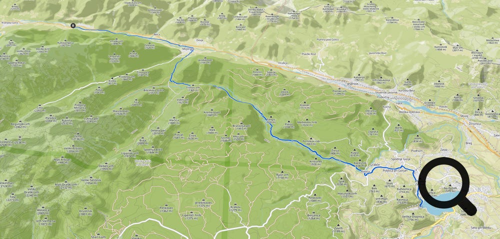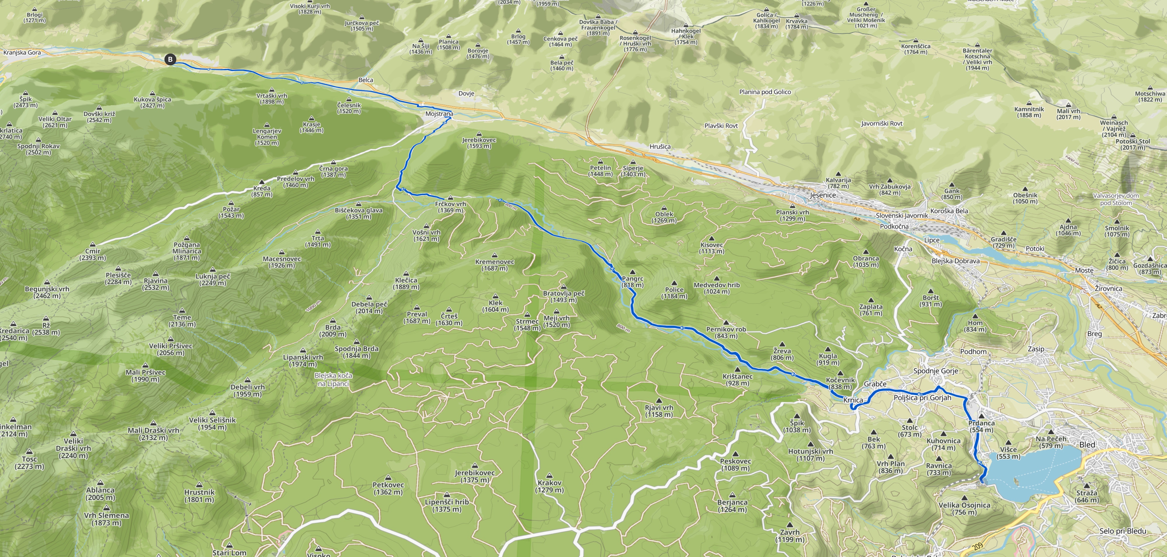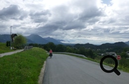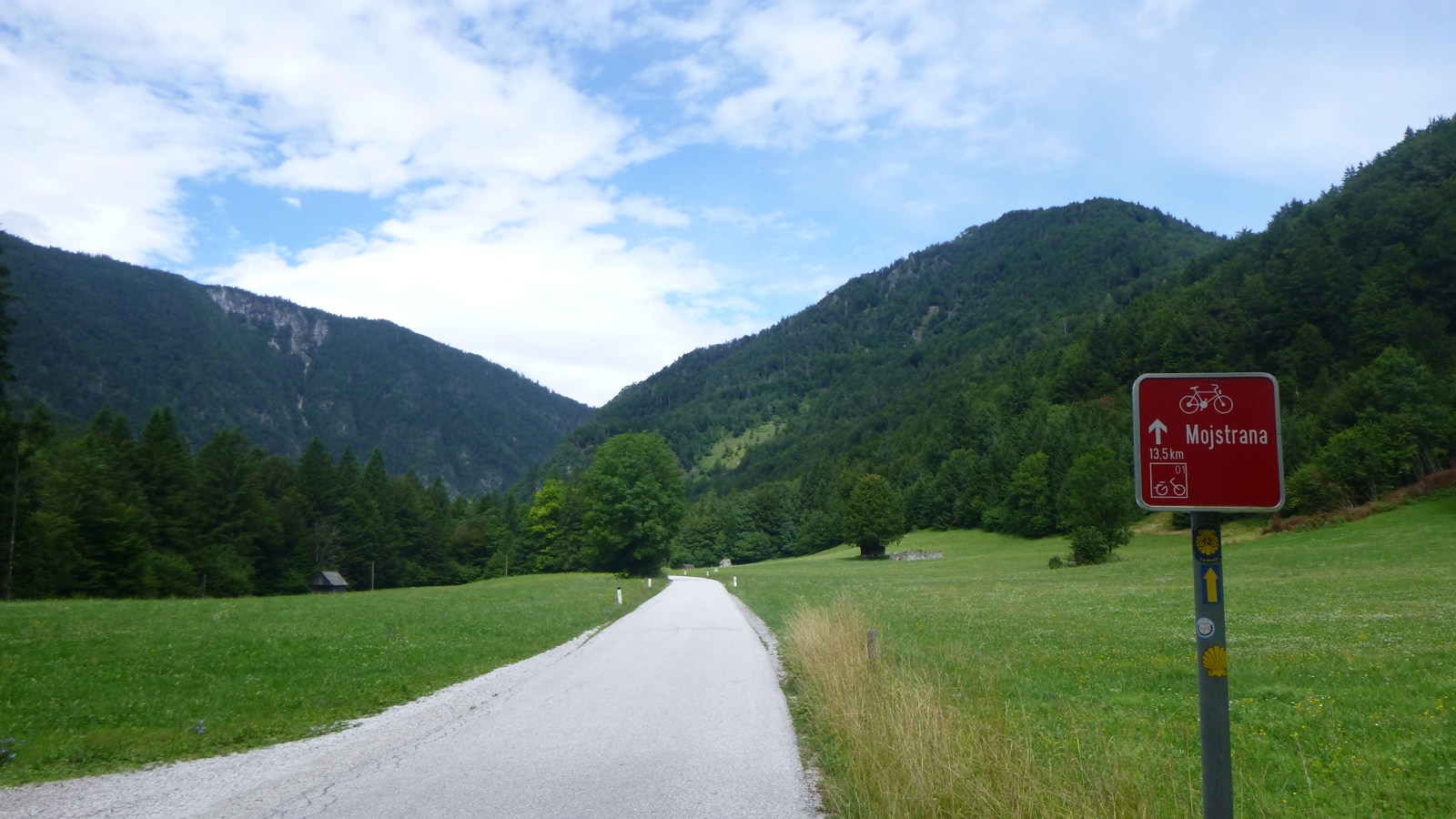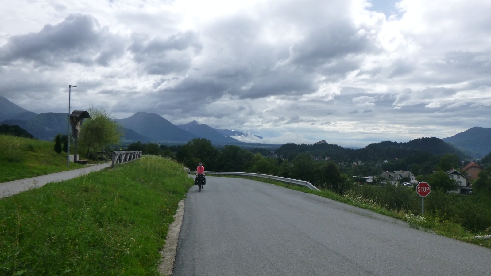 Die Fahrt beginnt mit einem steilen Anstieg hoch zum Bahnhof, dann hinaus aus Bled über kleine Landstraßen durch ein paar Dörfer. In Zgornje Gorje läutet die Kirchenglocke in einem wilden Stakkato, während die Kirchenbesucher heimwärts streben.