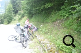 Ein paar Minuten später rasen wir die Straße hinunter, eine schöne Erholung. Hinter einer Kurve hilft Sabine der Frau vom Aussichtspunkt erneut. Diesmal ist ihre Tochter beim Bergabfahren gestürzt und benötigt Pflaster und Desinfektionsmittel.