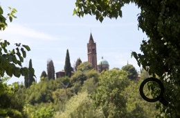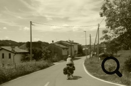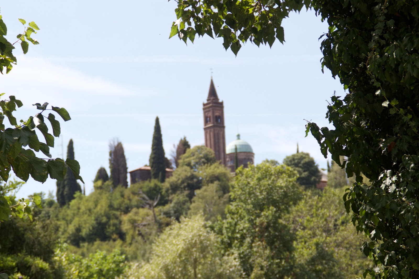 Oben auf dem Berg liegt die Kirche Santuario della Madonna della Salute und blickt auf das weite Tal. In Fonte Alto biegen wir für eine kurze Zeit auf eine verkehrsreichere Straße ab, aber bald verlassen wir diese wieder.