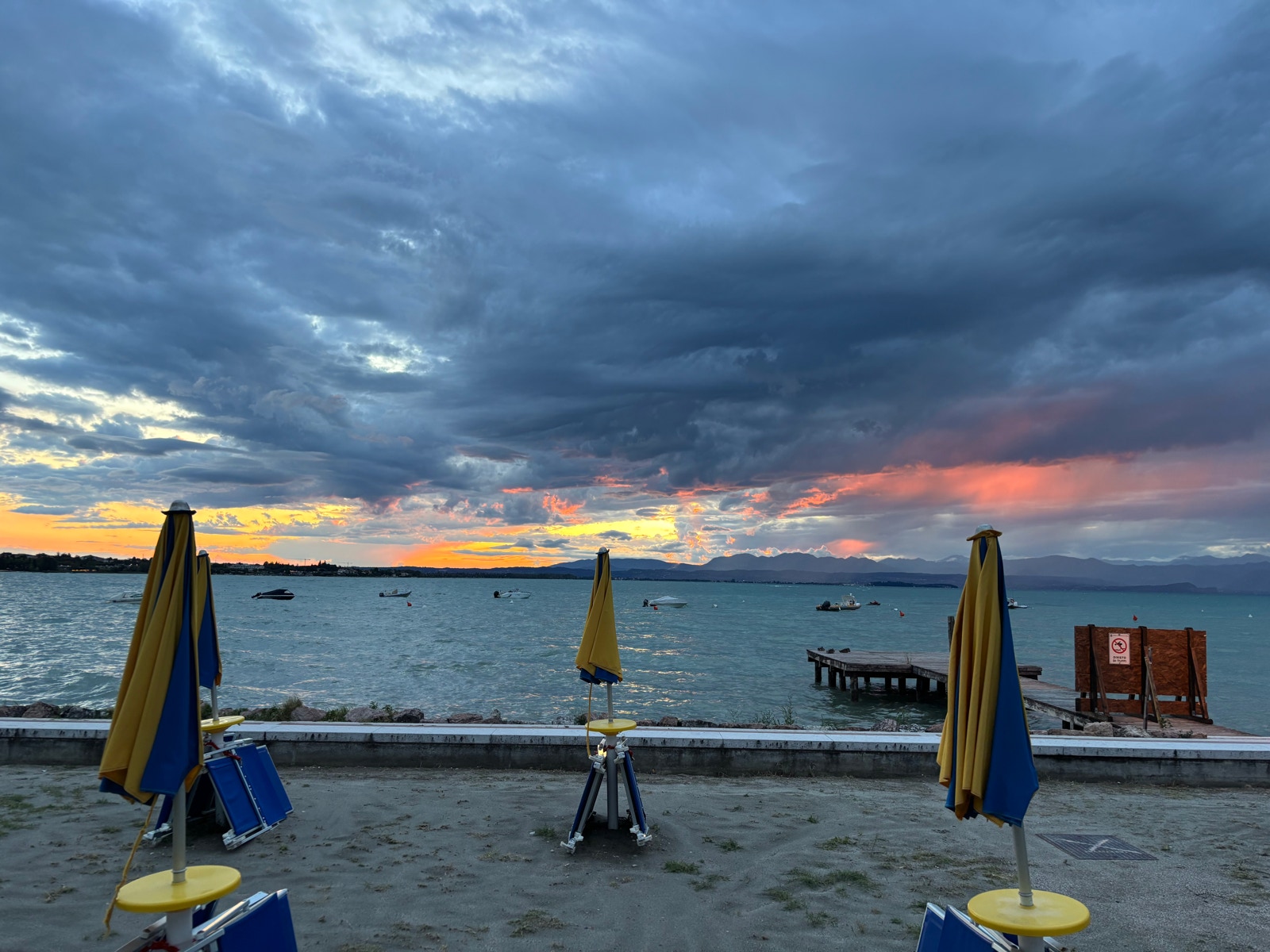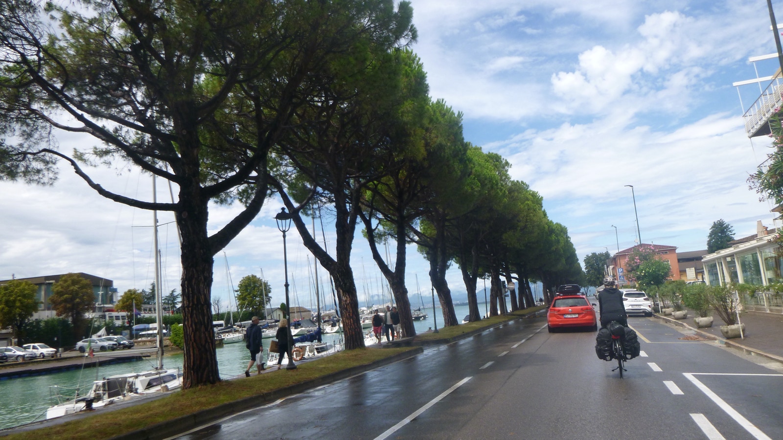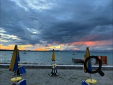 Als wir schließlich in Peschiera del Garda ankommen, regnet es immer noch. Wir nehmen vorm Bahnhofsrestaurant ein Getränk, und können dort regengeschützt sitzen.