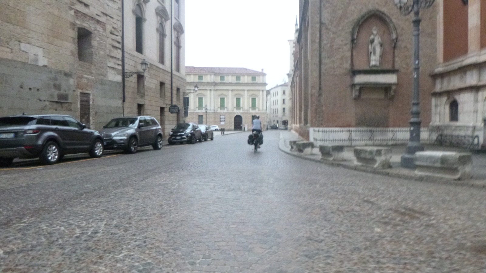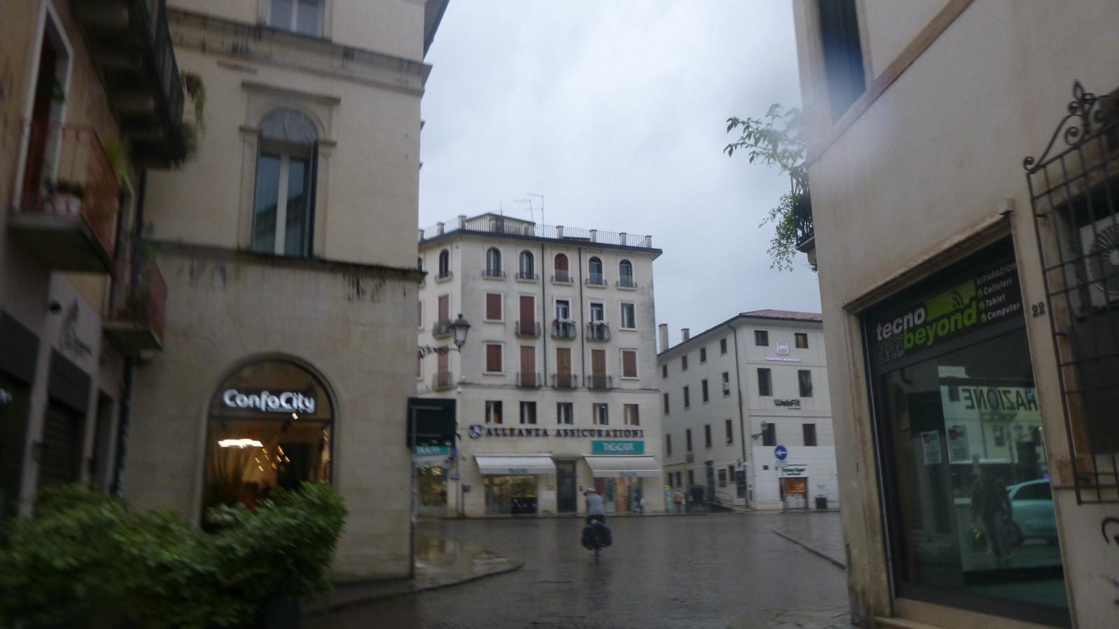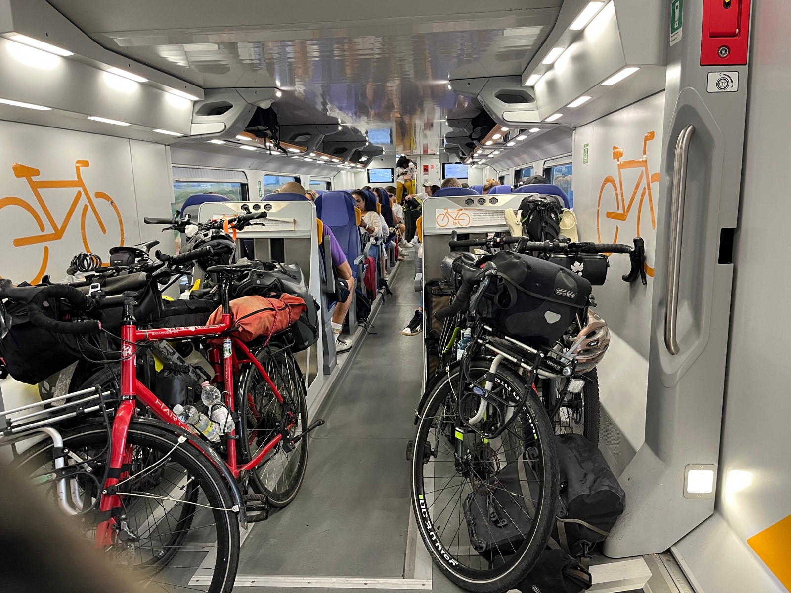 In Breschia müssen wir umsteigen, aber das klappt aufgrund funktionierender Aufzüge problemlos. Unterwegs schüttet es wie aus Eimern.