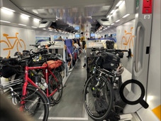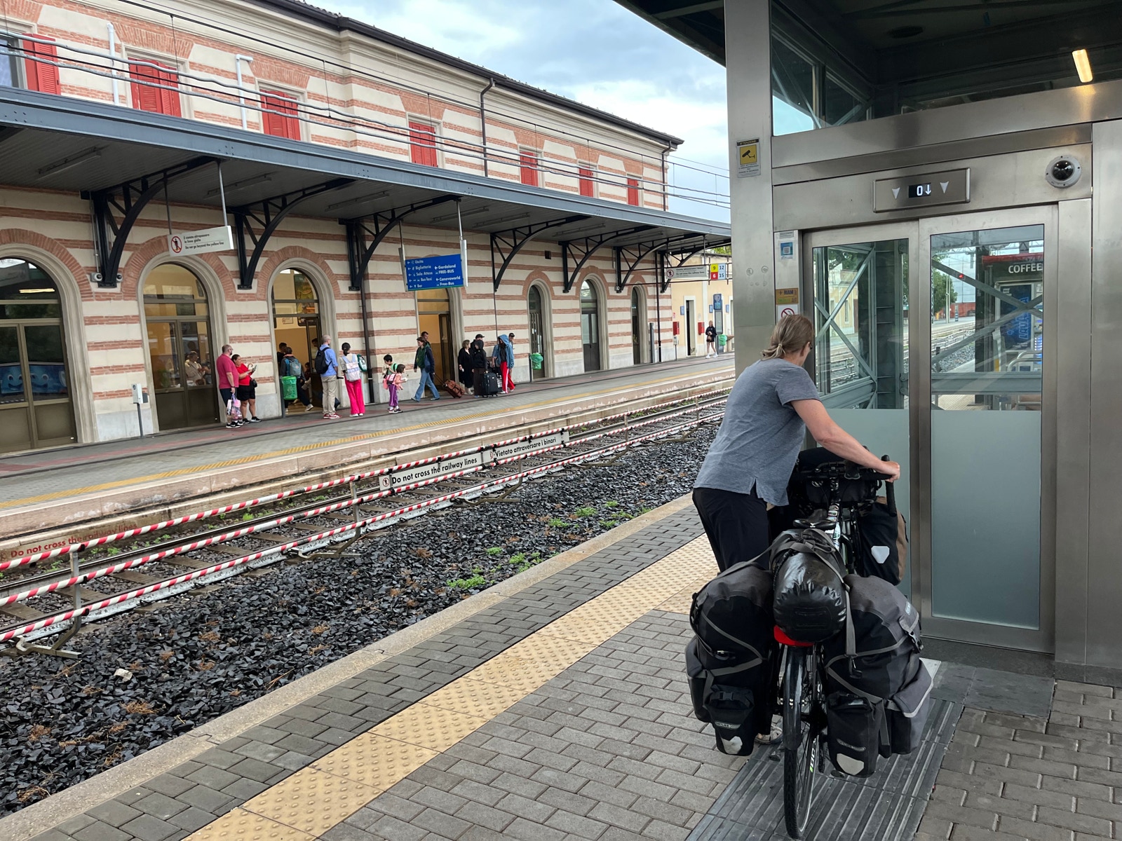 Wir düsen zum Bahnhof, denn wir haben uns vorgenommen, wegen des angesagten Sauwetters und des bockenden Fahrrads die italienischen Bahnen zu testen.