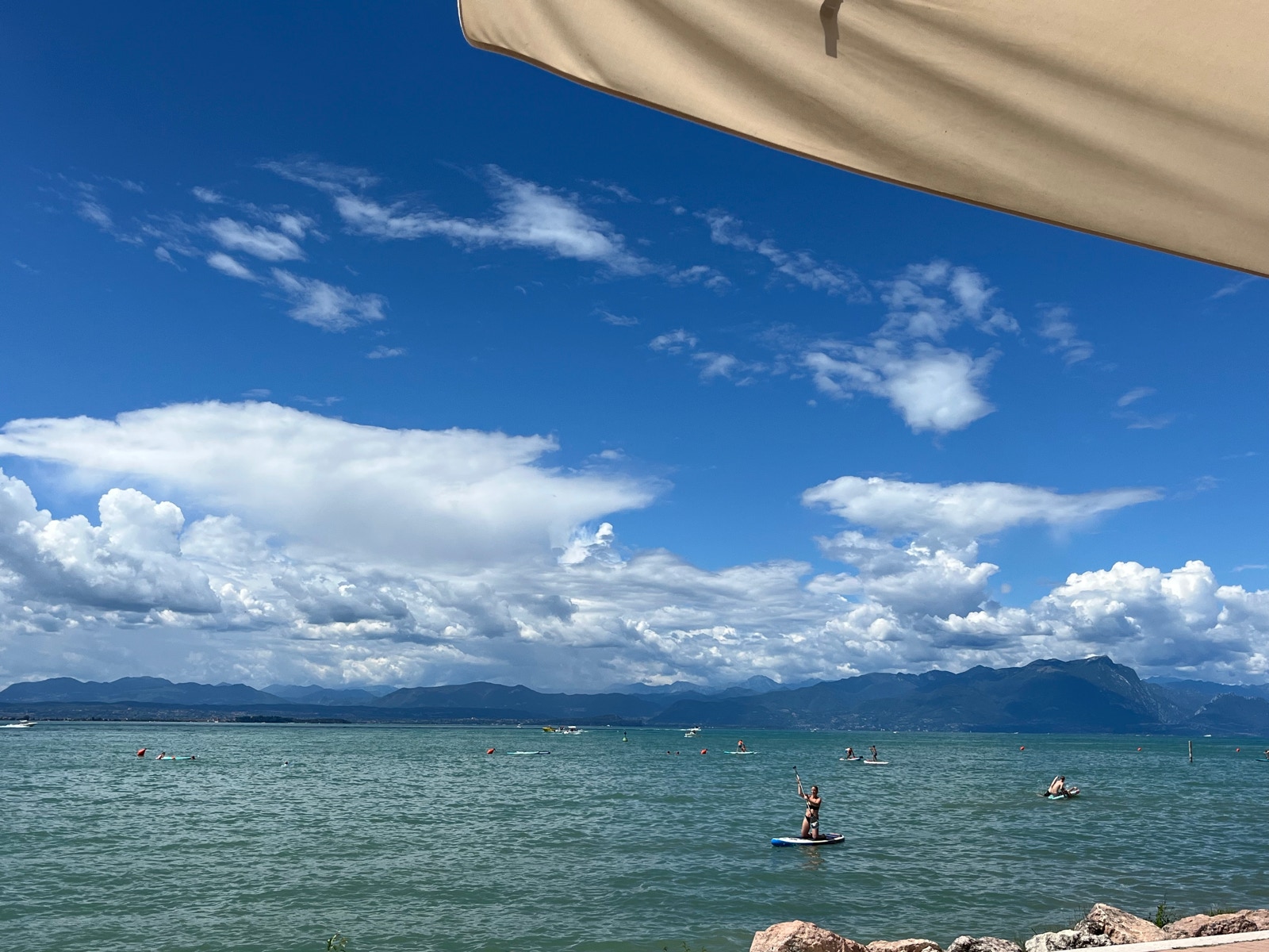 Beim Erfrischungsgetränk an der Beach-Bar kann man ordentlich gucken: Radfahrer, Flaneure und Flaneusen, SUP-Anfänger geben gut was her.