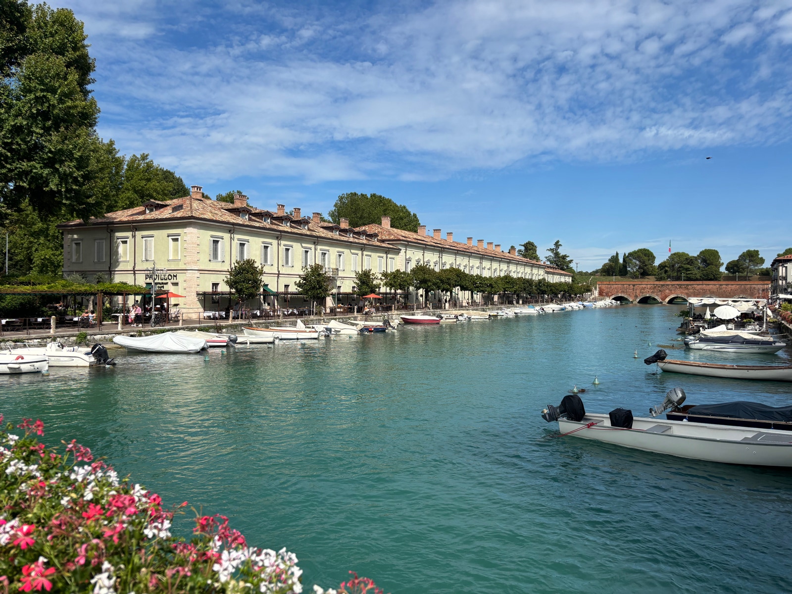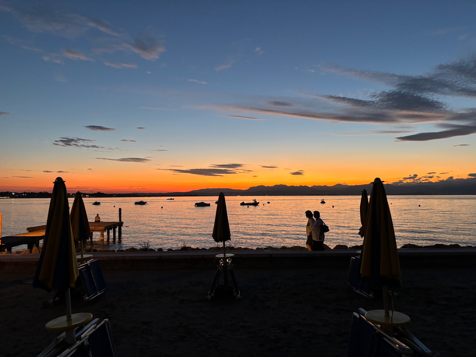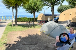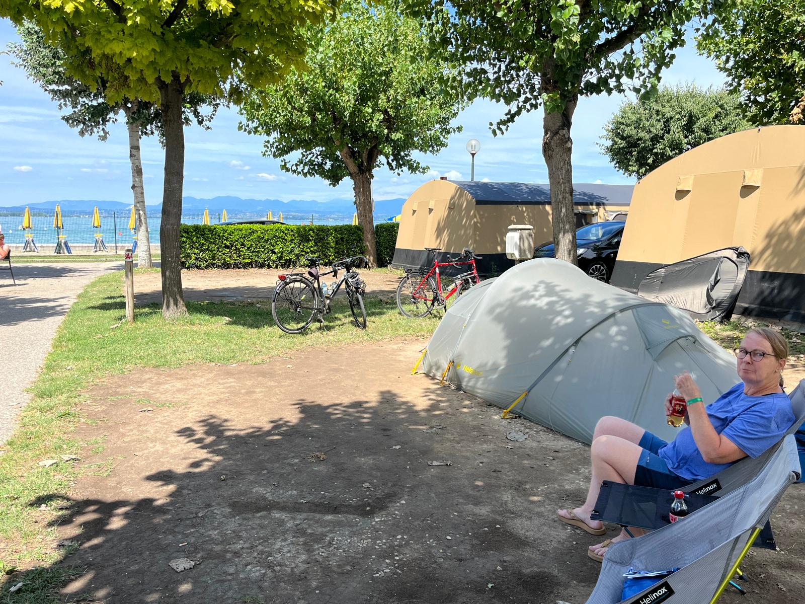 Für Klaus gibt es noch eine neue Radhose, dann kaufen wir Proviant ein und fahren zurück zum Platz. Nachdem wir einige Zeit mit Würfeln verbracht haben, machen wir uns auf den Fußweg Peschiera.