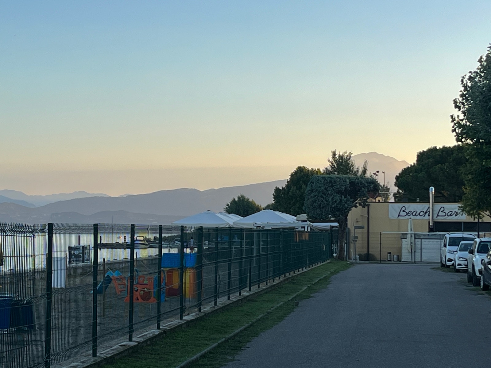Also schieben wir wieder zurück nach Desenzano, das sind nochmal 6 Kilometer. Wo es eben geht, läßt Klaus das Rad rollen, aber bei der geringsten Belastung dreht wieder alles durch.