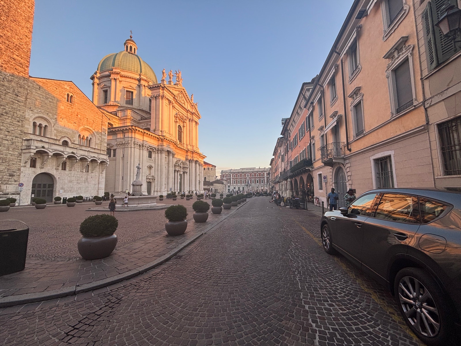 Die Bahn fährt eine gute halbe Stunde, dann sind wir in Breschia. Bis zum „Bikepoint“ schieben wir die Räder durch die Stadt. Dort stellt man fest, daß die erforderlichen Ersatzteile nicht vorrätig sind und empfiehlt uns einen Laden auf der Via Solferino.