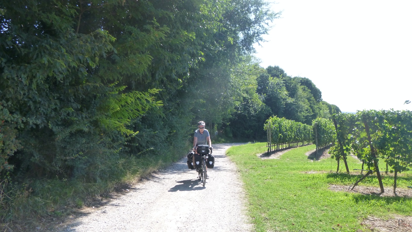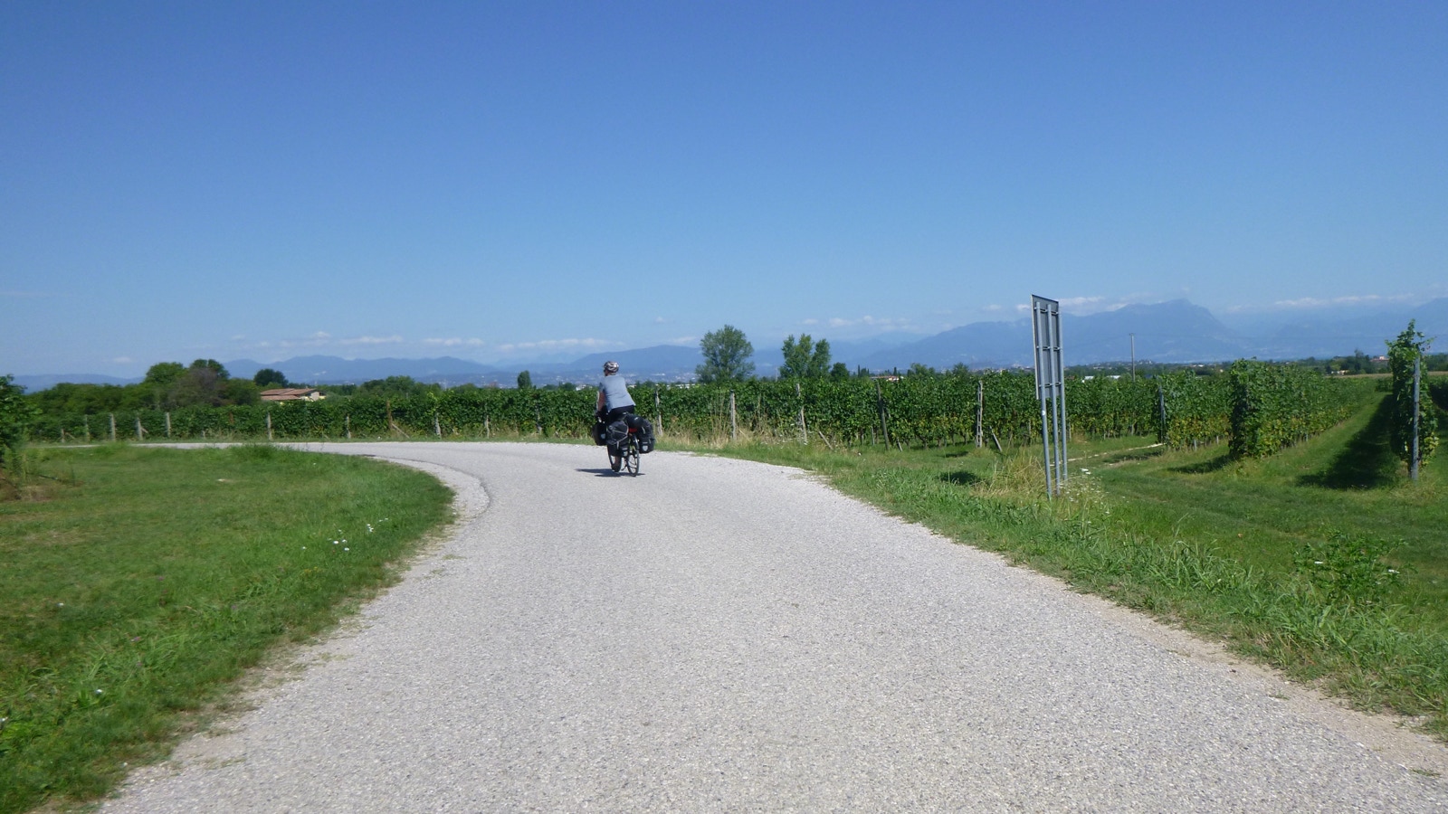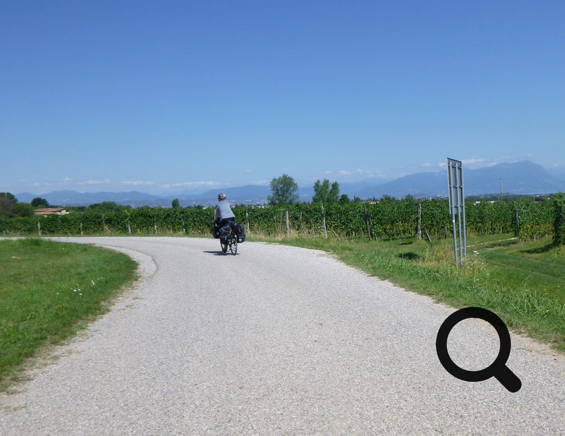 In Peschiera del Garda ist wieder mal ordentlich Verkehrschaos und wir wurschteln uns durch. Anschließend verlassen wir den Ort Richtung Inland, vom See weg und durchstreifen Weinberge und einzelne Siedlungen. Leider teilweise in schwer zu fahrendem Kies und bergauf.
