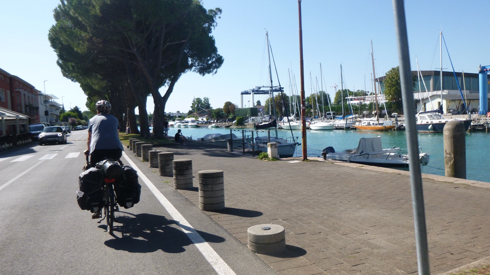 Klaus’ Rad läßt die Kette mittlerweile so heftig durchrutschen, daß es immer schwieriger wird, weiterzufahren. Hinter Desenzano del Garda geht irgendwann gar nichts mehr und Klaus muß schieben, wenn es nicht gerade bergab geht.