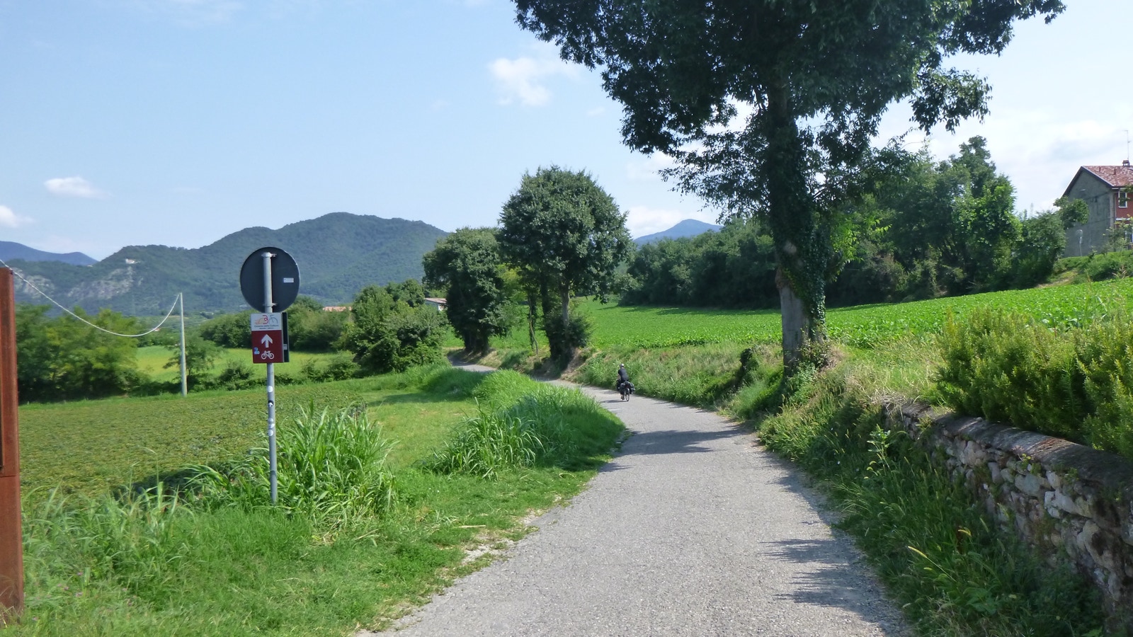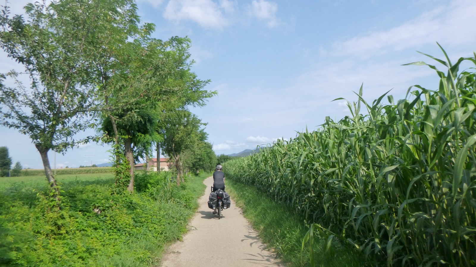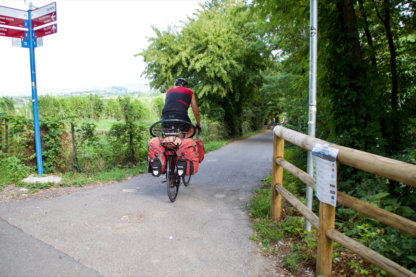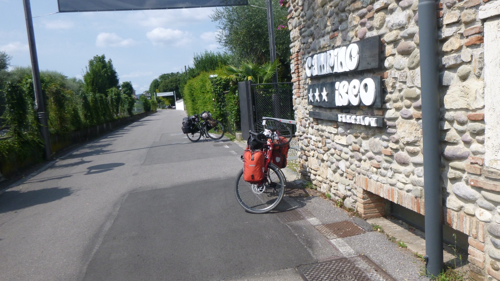 Über einen gut beschilderten ruhigen Radweg rollen wir nach Iseo an den See. Dort sind drei nebeneinanderliegende Campingplätze, die allesamt ein Schild am Tor haben: komplett ausgebucht!