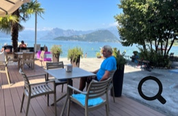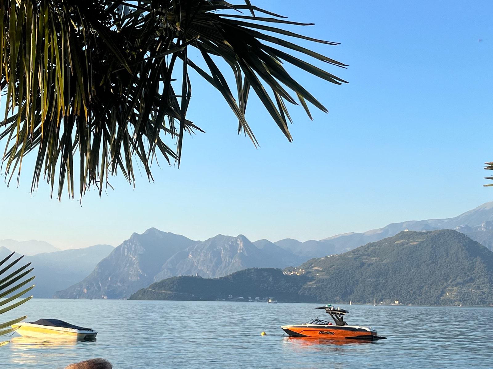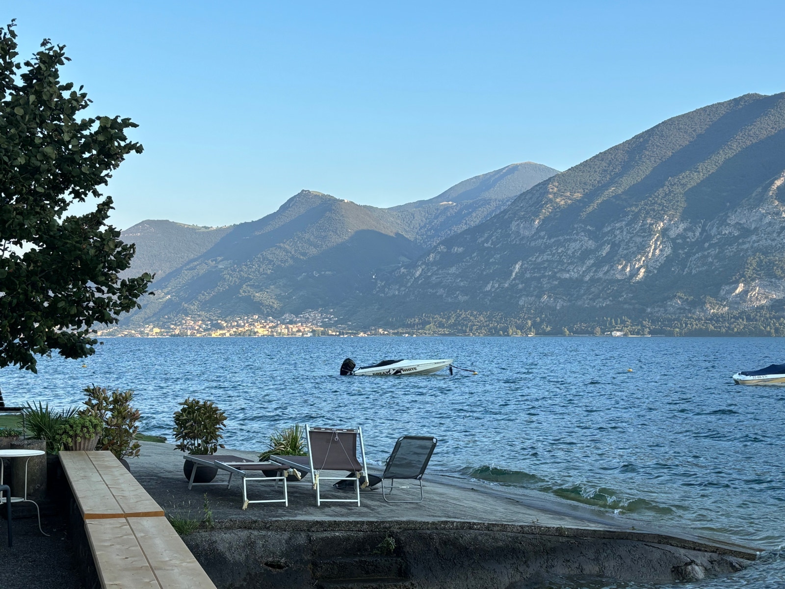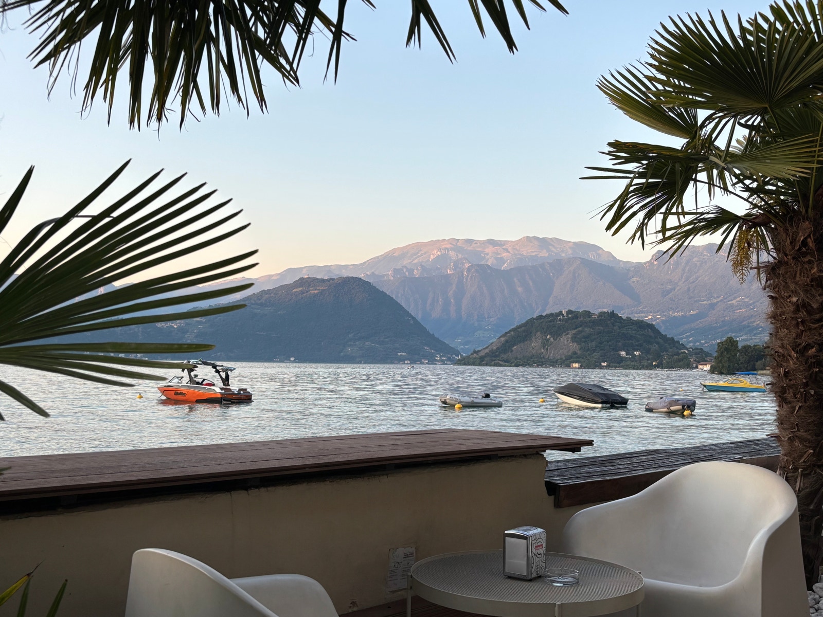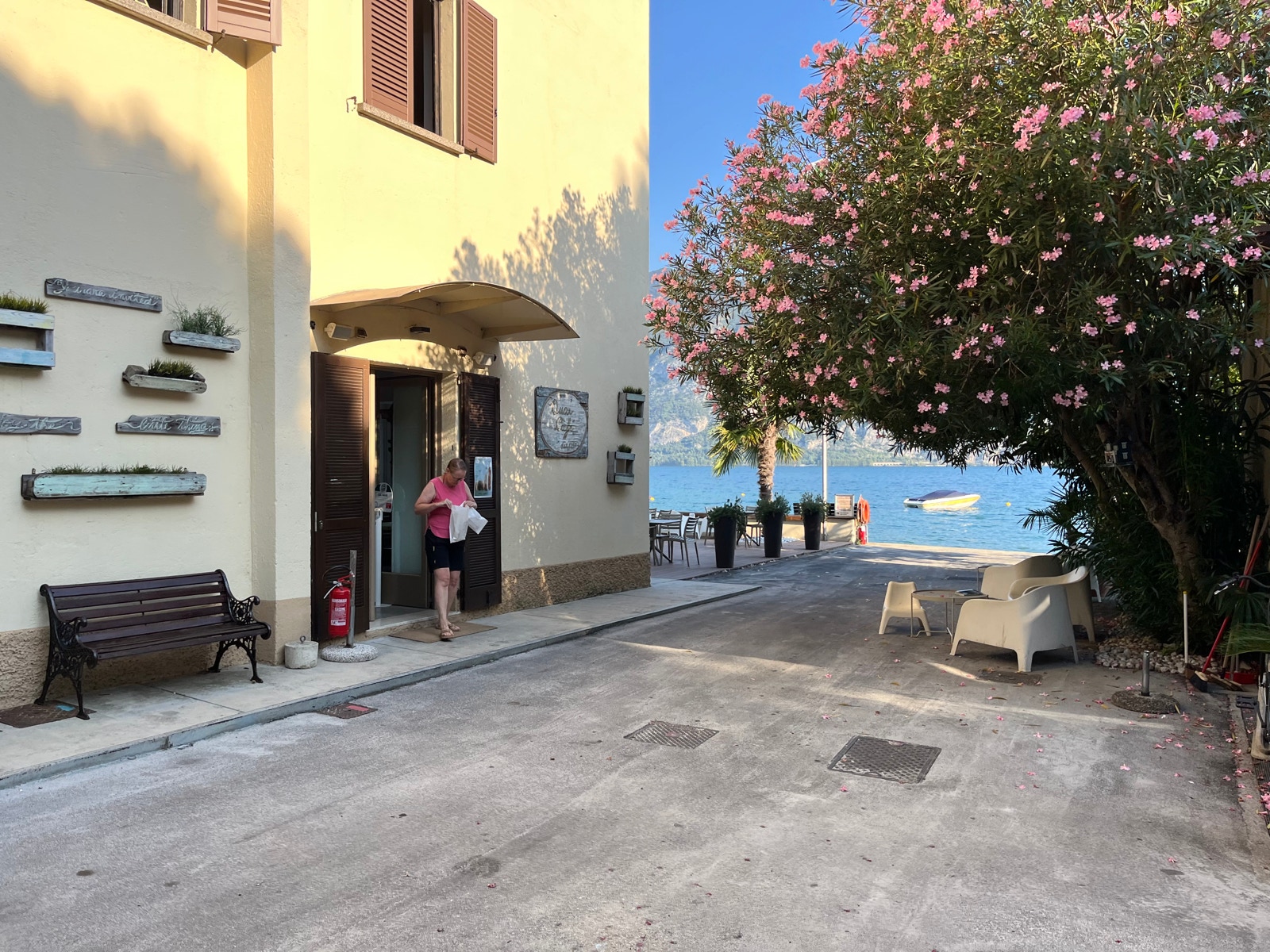 Mit den Fahrrädern fahren wir dann nach Iseo zum Einkaufen. Am Nachmittag setzen wir uns auf die Terrasse des Campingplatzes am See und genießen Sonne, Ausblick und kühle Getränke.