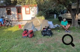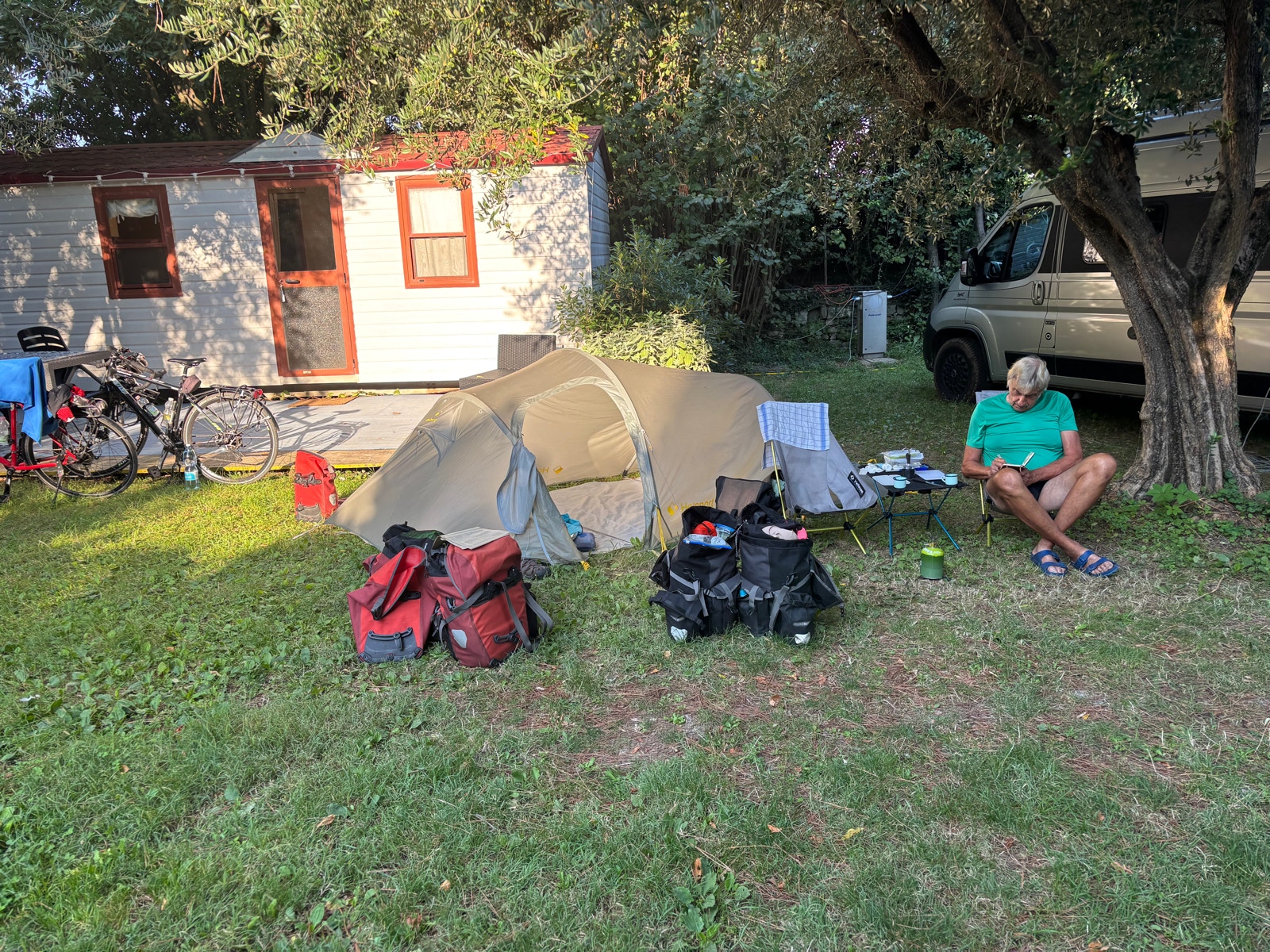 Es ist der letzte Morgen auf dem Campingplatz für diesen Urlaub. Das Zelt ist trocken geblieben und wird sachgerecht verpackt. Wir starten recht spät, weil es die Brötchen hier immer erst ab 8 Uhr gibt.
