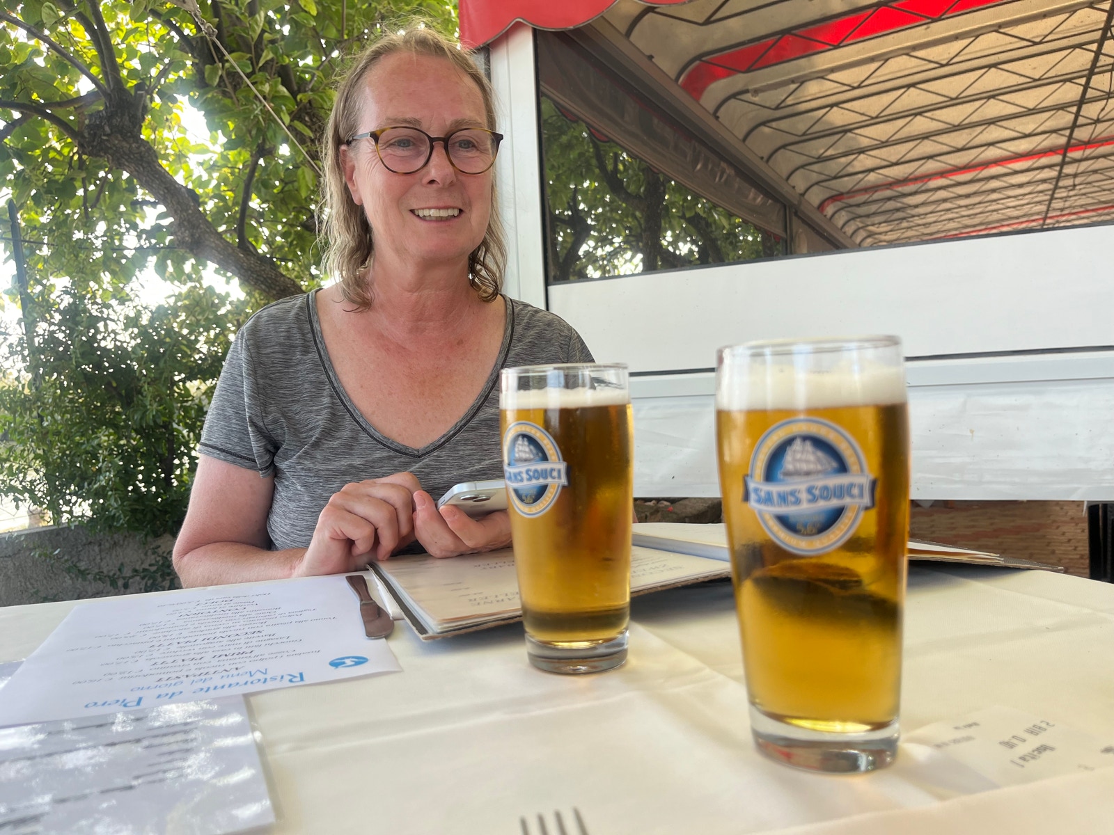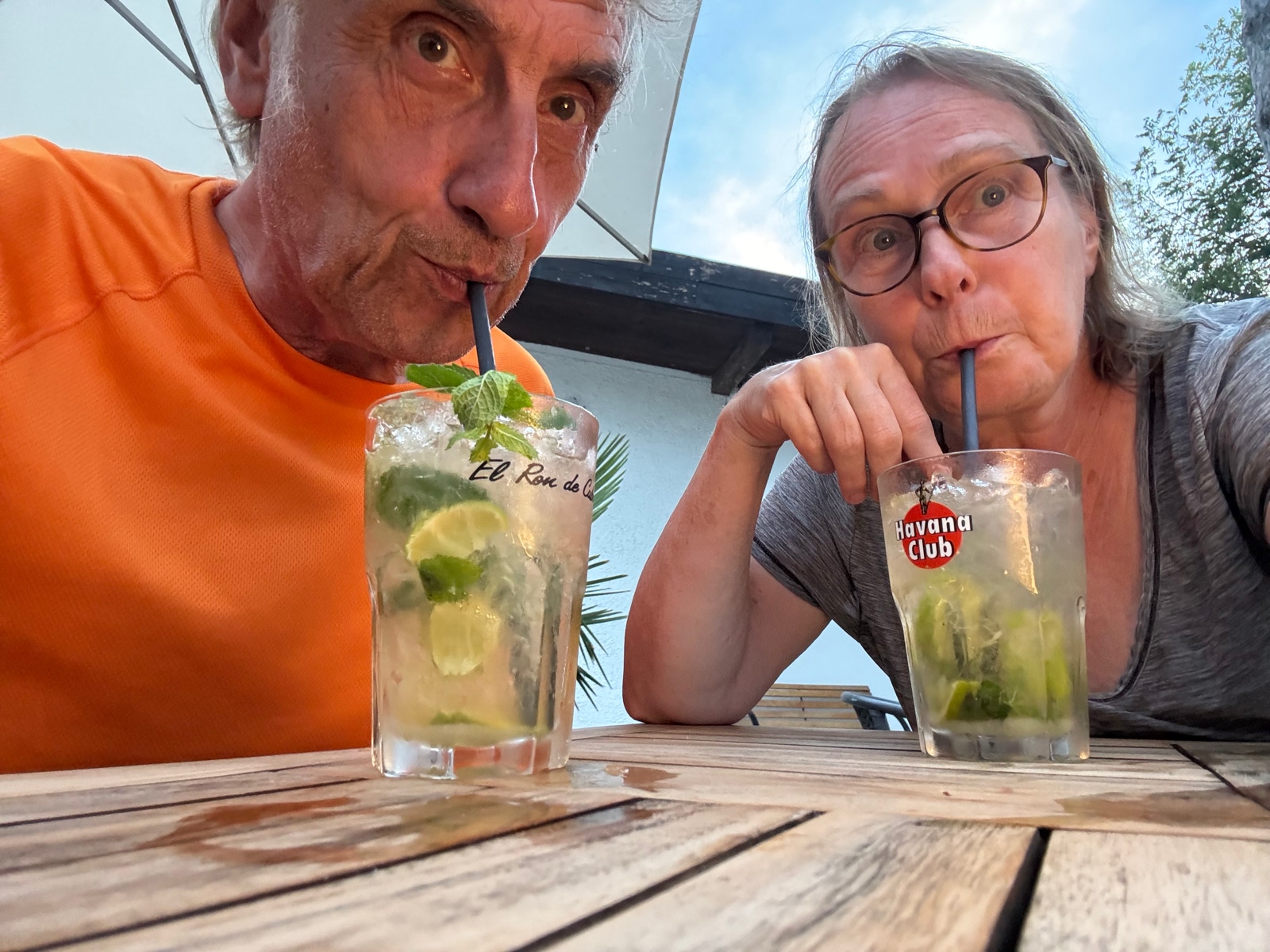 Wieder zurück auf dem Campingplatz verbringen wir den restlichen Abend auf der Terrasse der Bar mit vielen anderen Menschen bei Drinks und Livemusik.