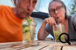 Danach wird große Wäsche gemacht, das erledigt die Waschmaschine in einer halben Stunde. Das Aufhängen auf acht Meter Leine müssen wir selbst erledigen. Die mittägliche „Happy Hour“ an der Bar verpassen wir natürlich nicht.