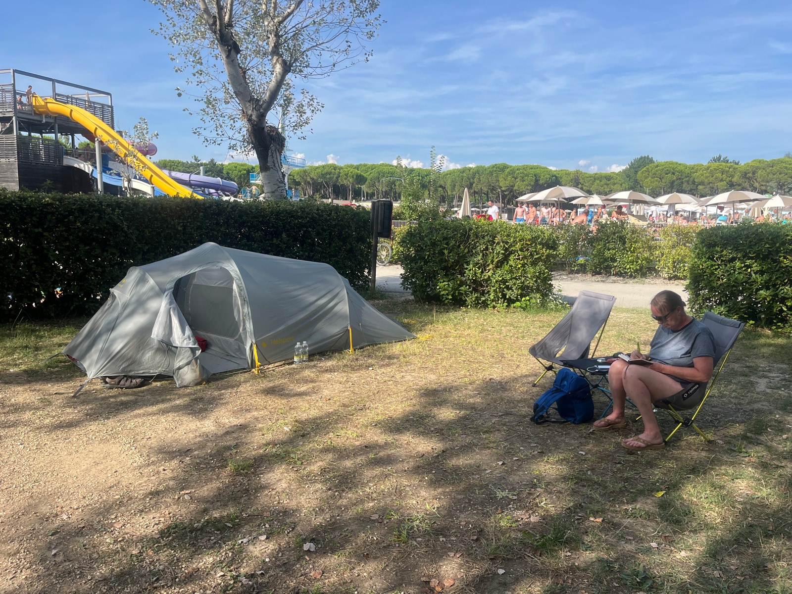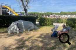 Kurz nach Mittag checken wir ein im Ferienpark „Marina Julia“ und bekommen eine große Parzelle am Pool, der hier eher an ein großes animiertes Freibad erinnert. Uns stört es nicht, es gibt viel zu sehen!