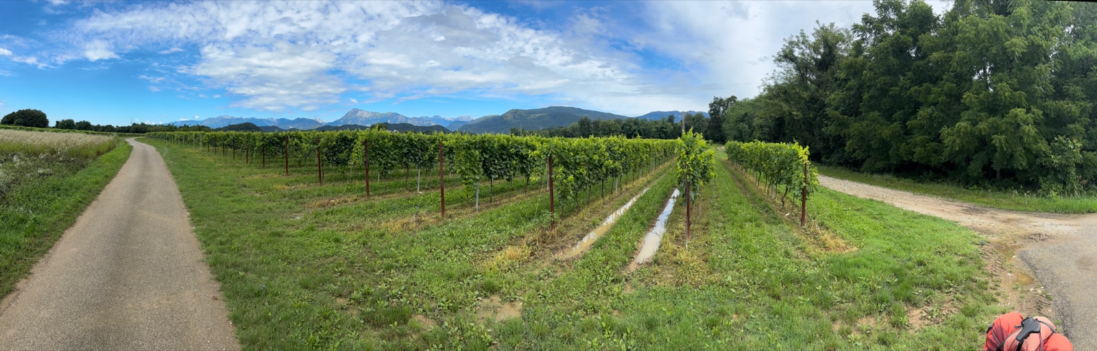 In der dritten Woche fahren wir wieder nach Italien hinüber und dort auf den Alpe-Adria-Radweg. Wir besuchen einige ältere Städte, übernachten auch mal am Fuß des Monte Grappa und beenden die Woche am Gardasee.